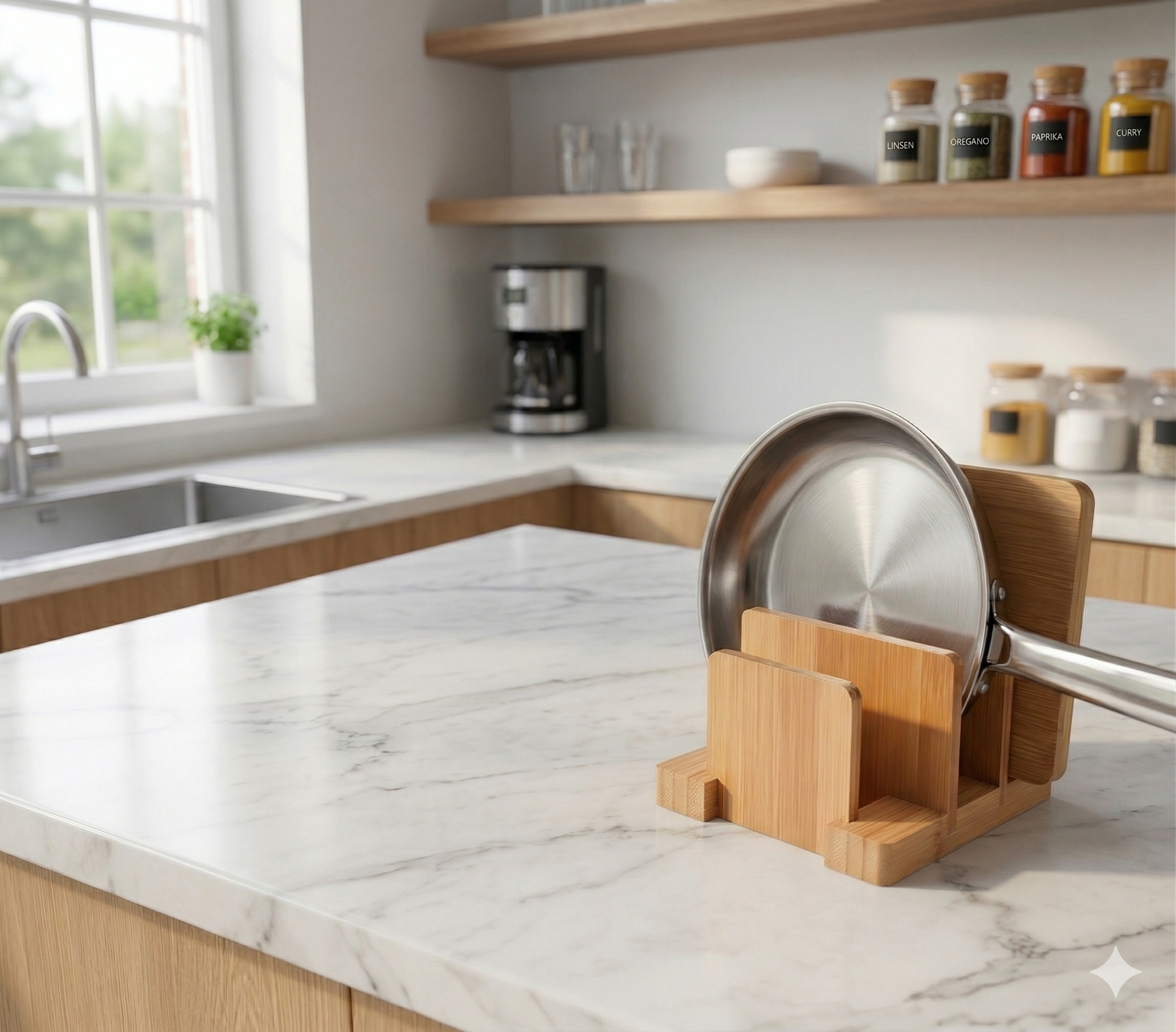 Schluss mit dem Stapeln! Jede Pfanne hat ihr eigenes Fach und ist sofort griffbereit.